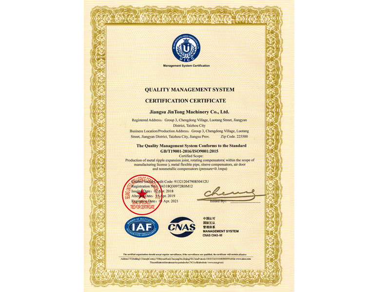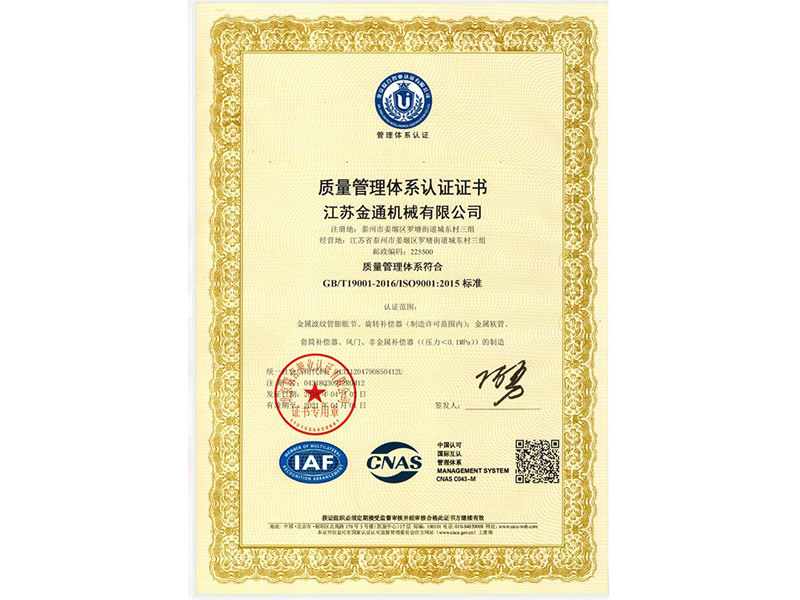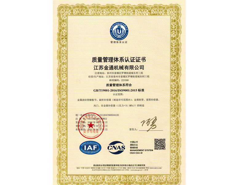 質(zhì)量管理體系證書(shū)
