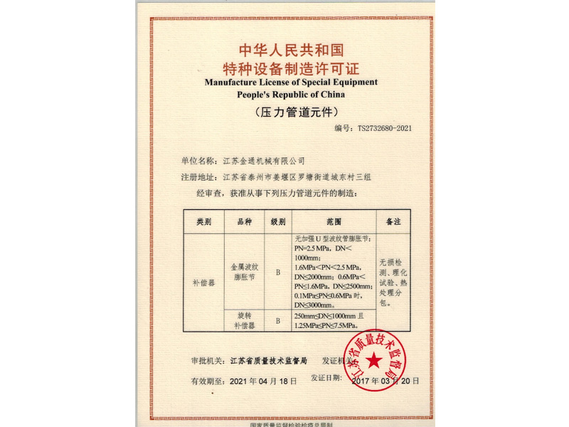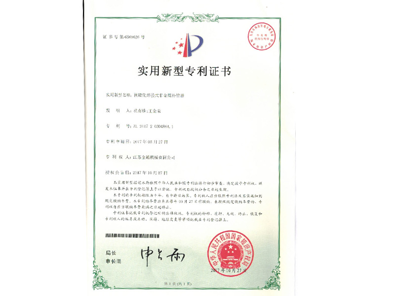 預(yù)硫化焊接式非金屬補(bǔ)償器專(zhuān)利證書(shū)
